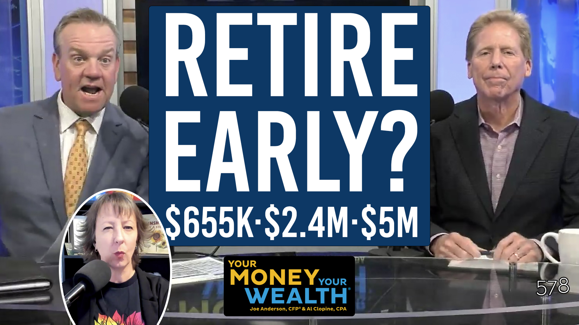 Juan and Mary in Brooklyn are 49 and 48 with $2.2 million saved. Can Juan afford to retire early, or just walk away if he gets fired? And if they get divorced, yikes – but does the math still work? That’s today on Your Money, Your Wealth® podcast number 573. But first, “Reuben Sailing Shoes” is 68, single, retired, and has $1.6 million saved, but he’s never had a budget in his life. How much can he actually spend? “Leslie and Ben” are federal retirees in their seventies with great pensions and a mix of pre-tax and Roth savings, and “Mork and Mindy” in Delaware are retired with an annuity, a pension, Social Security, and $1.3 million in an IRA. Joe Anderson, CFP®, and Big Al Clopine, CPA, spitball on how Roth conversions and RMD timing can help both couples minimize taxes and make the most of what they’ve got.