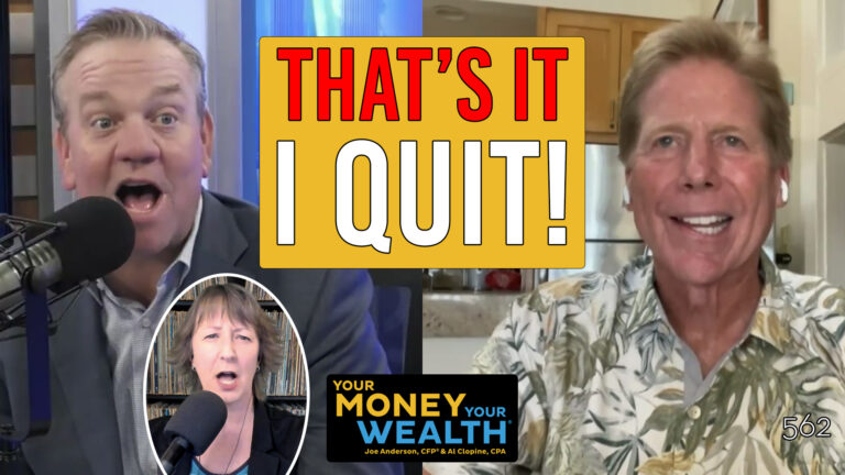 Today on Your Money, Your Wealth® podcast 402, are you behind on your retirement savings? What do you need to do to catch up? If you retire in just a few years, will your money last until age 90? Based on the 5 year Roth withdrawal rules, do you need to open a new Roth IRA for each Roth conversion? Plus, Joe and Big Al spitball a health insurance, capital gains and real estate strategy to save more money and have more wealth in retirement. Finally, the fellas revisit the SECURE Act rules for withdrawing money from an inherited IRA and Social Security income limits. I’m producer Andi Last, and here are the hosts of Your Money, Your Wealth®, Joe Anderson, CFP® and Big Al Clopine, CPA.